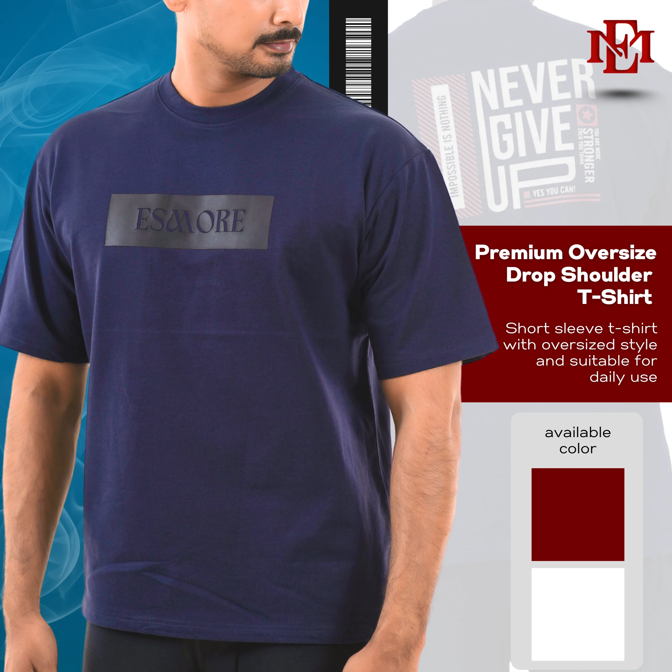 Elevate your streetwear game with the Esmore Premium Drop Shoulder T-Shirt. Made from Cotton Cross Terry fabric (230 GSM), it offers a soft, durable, and structured feel. Featuring an oversized relaxed fit, drop shoulder cut, and rubber print design, it’s perfect for daily wear, hangouts, and travel. Available in blue, maroon, and white — stay bold, classy, and effortlessly stylish with Esmore Lifestyle.
